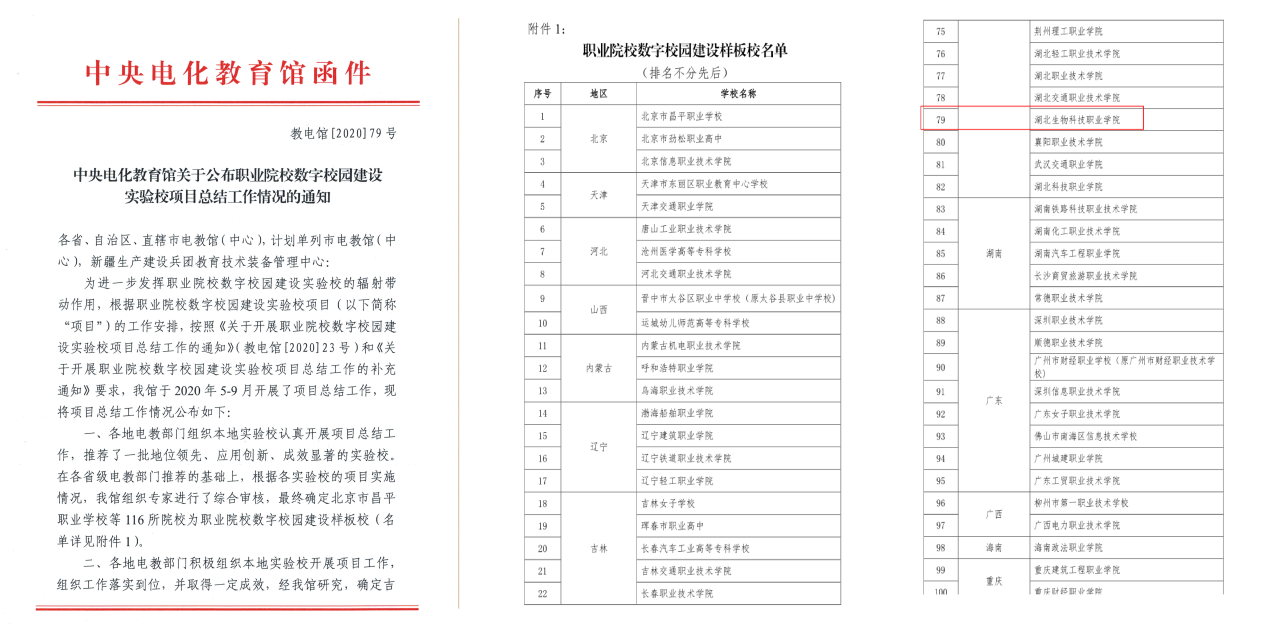 近日,中央電化教育館下發《關于公布職業院校數字校園建設實驗校項目總結工作情況的通知》,确定我校為全國116所職業院校數字校園建設樣闆校之一。