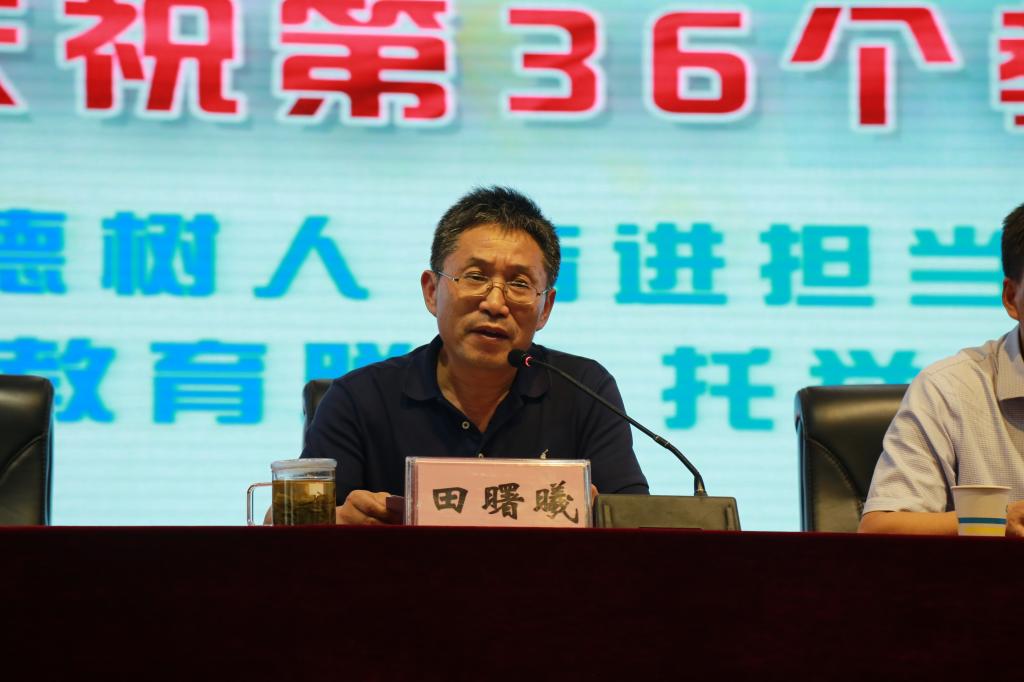 校黨委書記田曙曦發表重要講話。他首先向全體教職工緻以節日的祝賀和誠摯的慰問,同時高度贊揚了各黨支部在疫情防控中敢于擔當、無私奉獻的精神。結合習近平總書記關于第36個教師節的重要指示,他提出三點希望,一是切實加強師德師風建設,提高職業道德;二是系統學習教育教學理論,提升職業素養;三是切實加強教學研究,提升職業能力。