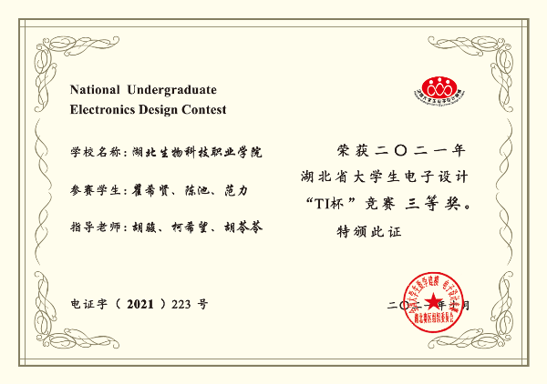 全國大學生電子設計競賽是由教育部和工業和信息化部于1994年共同發起的大學生學科競賽,至今有27年的曆史,其目的在于推動高等學校進行信息與電子類學科課程體系和課程内容的改革,提高參賽學生針對實際問題進行電子設計制作的能力。2021年電賽共有1117個高等院校(含高職)的19735個學生隊伍,近6萬名大學生參加,競争異常激烈。信息傳媒學院物聯網專業學生參加全國大學生電子設計競賽。學生根據賽題在四天三夜共84小時内,設計制做出電子産品提交組委會專家組集中測評,最終獲省賽三等獎。