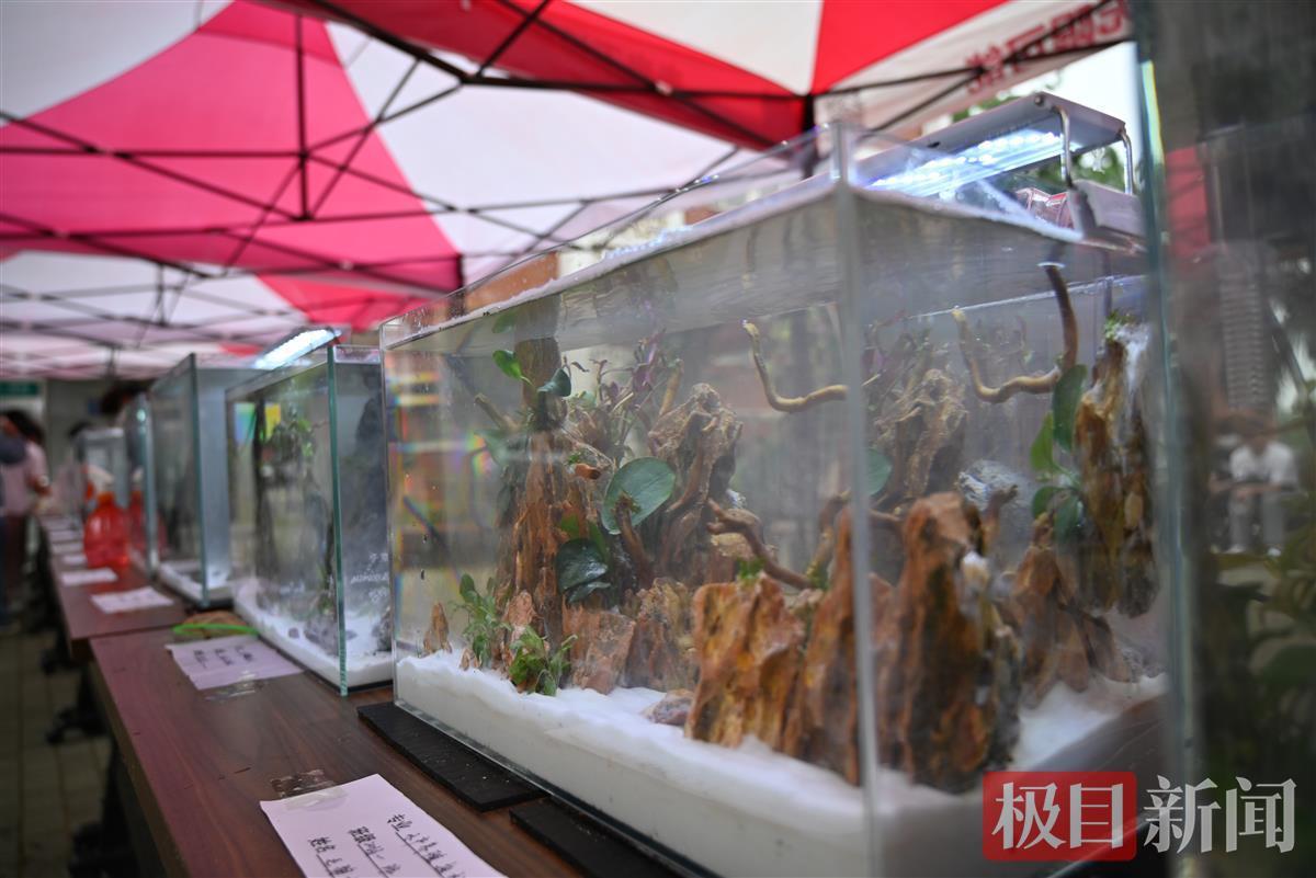 水族景觀設計、茶藝技能展示 、傳承傳統手工藝、室内設計展示……當天上午,花樣繁多的展示活動,讓許多前來看展的同學們大開眼界。在水族景觀設計展示攤位前,該校20級水産一班的楊其國同學,正在向同學們介紹自己的作品《赴山河 行進江南》。