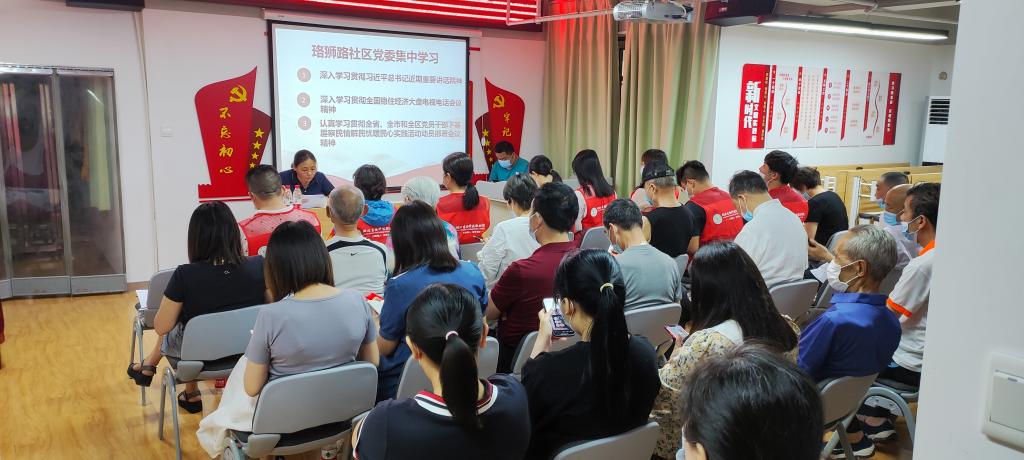 上午9點,聯合主題黨日活動在珞獅路社區居委會二樓會議室準時開幕。會議伊始,全體黨員起立共唱國歌,重溫入黨誓詞。會議由珞獅路黨委書記陳莉萍同志主持。陳書記帶領大家深入學習習近平總書記近期重要講話精神、貫徹全國穩住經濟大盤電視電話會議精神,認真學習貫徹全省、全市和全區黨員幹部“下基層、察民情、解民憂、暖民心”實踐活動動員部署會議精神。