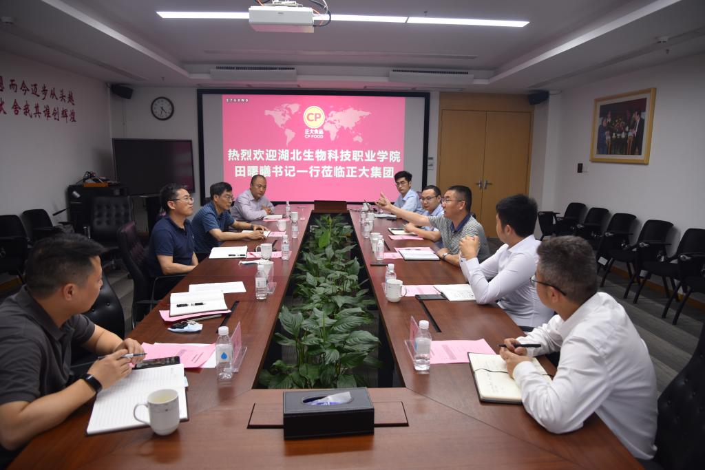 為深入貫徹落實《關于開展全國高校書記校長訪企拓崗促就業專項行動的通知》精神要求,深入落實高校畢業生就業工作“一把手”工程,充分發揮學校黨委書記、校長帶頭做好畢業生就業工作的重要示範作用。6月2日,校黨委書記田曙曦、招生就業處主任馬念、動物(食品)科技學院院長陳文欽、副院長曹雲等一行與正大集團湖北區生豬養殖事業資深總裁餘道勝、中南區武漢戰區銷售主管高翔、武漢正大水産有限公司人事經理陳俊卓、中南區培訓部經理李克強等正大集團相關領導在湖北農業科技樓大會議室進行了校企合作座談。