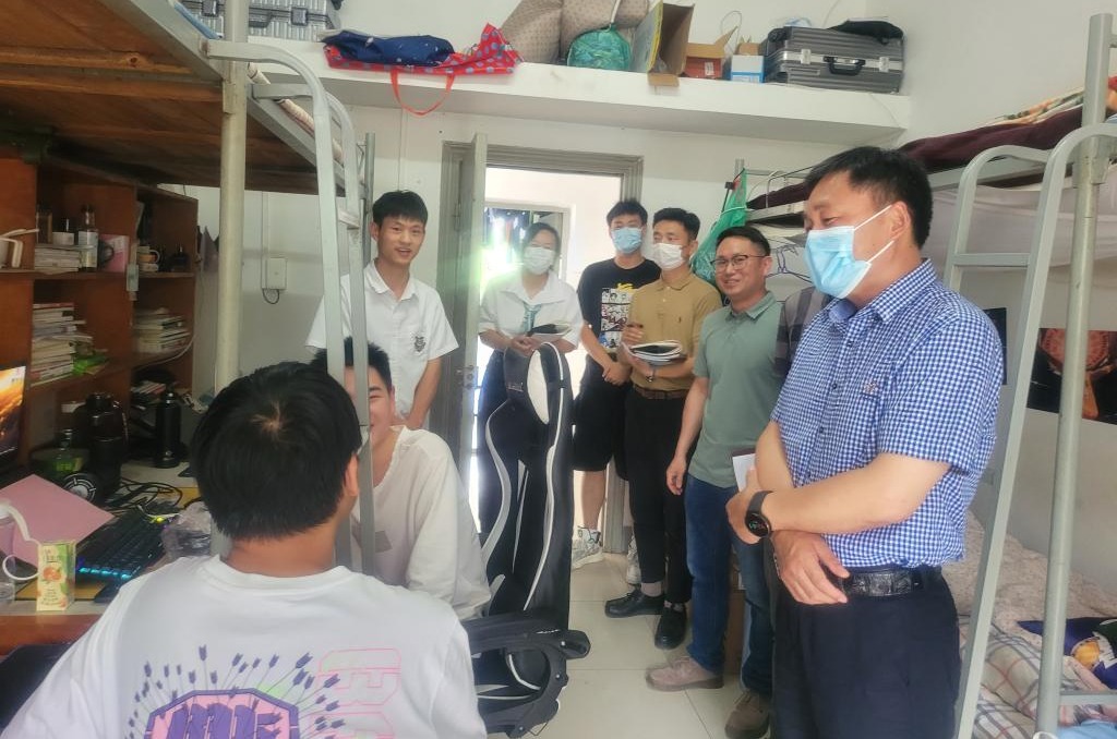龔伏廷首先來到“五幫五促”幫扶的班級——21計網2班的學生寝室,與學生在食堂衛生、寝室維修、空調使用以及疫情封閉管理等方面進行親切交流,對于學生提出的寝室床闆維修等問題進行了現場回複。