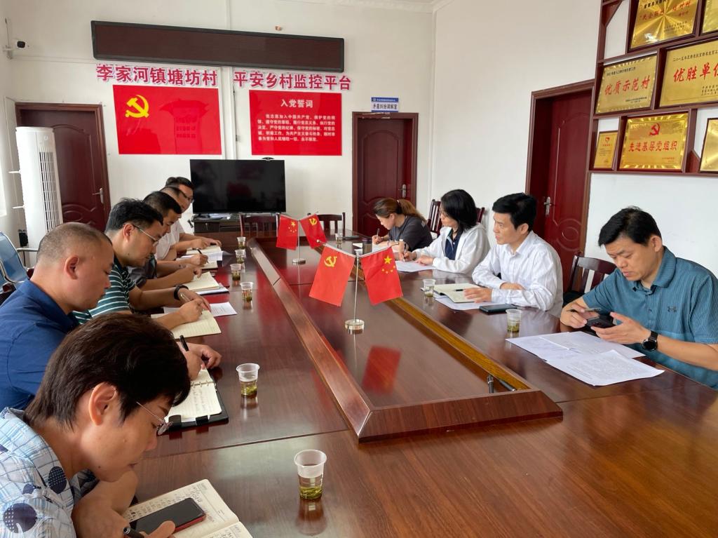 聯合調研組一行與塘坊村兩委和beat365在线登录職院駐村工作隊召開座談會,聽取了對駐村幫扶、推進鄉村振興工作的意見和建議。
