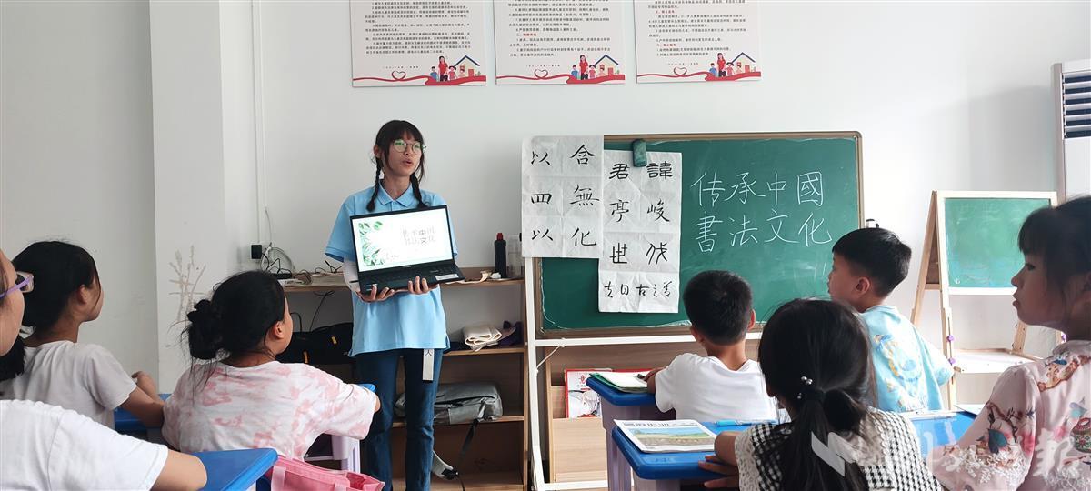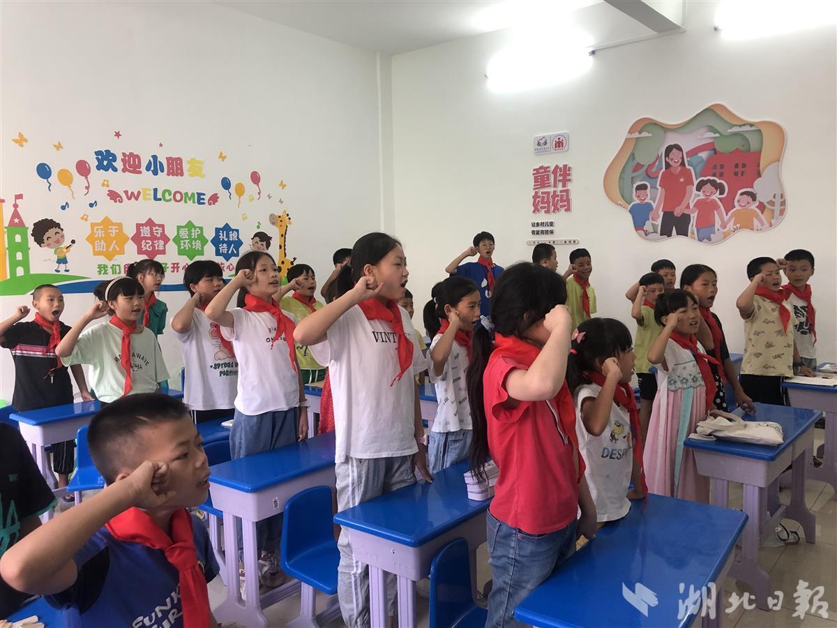 湖北日報訊(記者陳熹、通訊員劉騰飛、胡廣京)“鮮豔紅領巾,是國旗的一角,與國旗一樣,都是由革命先輩的鮮血染紅的!”8月2日,在恩施宣恩縣李家河鎮柚鄉苑集中安置社區“四點半學堂”,beat365在线登录“潤苗築夢”支教團隊員劉英卓正在給小朋友們講解紅領巾的意義。從7月中旬開始,該校10名志願者,在當地開展為期一個月的支教助學活動,陪伴李家河鎮塘坊村、柚鄉苑社區160餘名留守兒童共度暑期,其中,121名留守兒童來自脫貧戶。